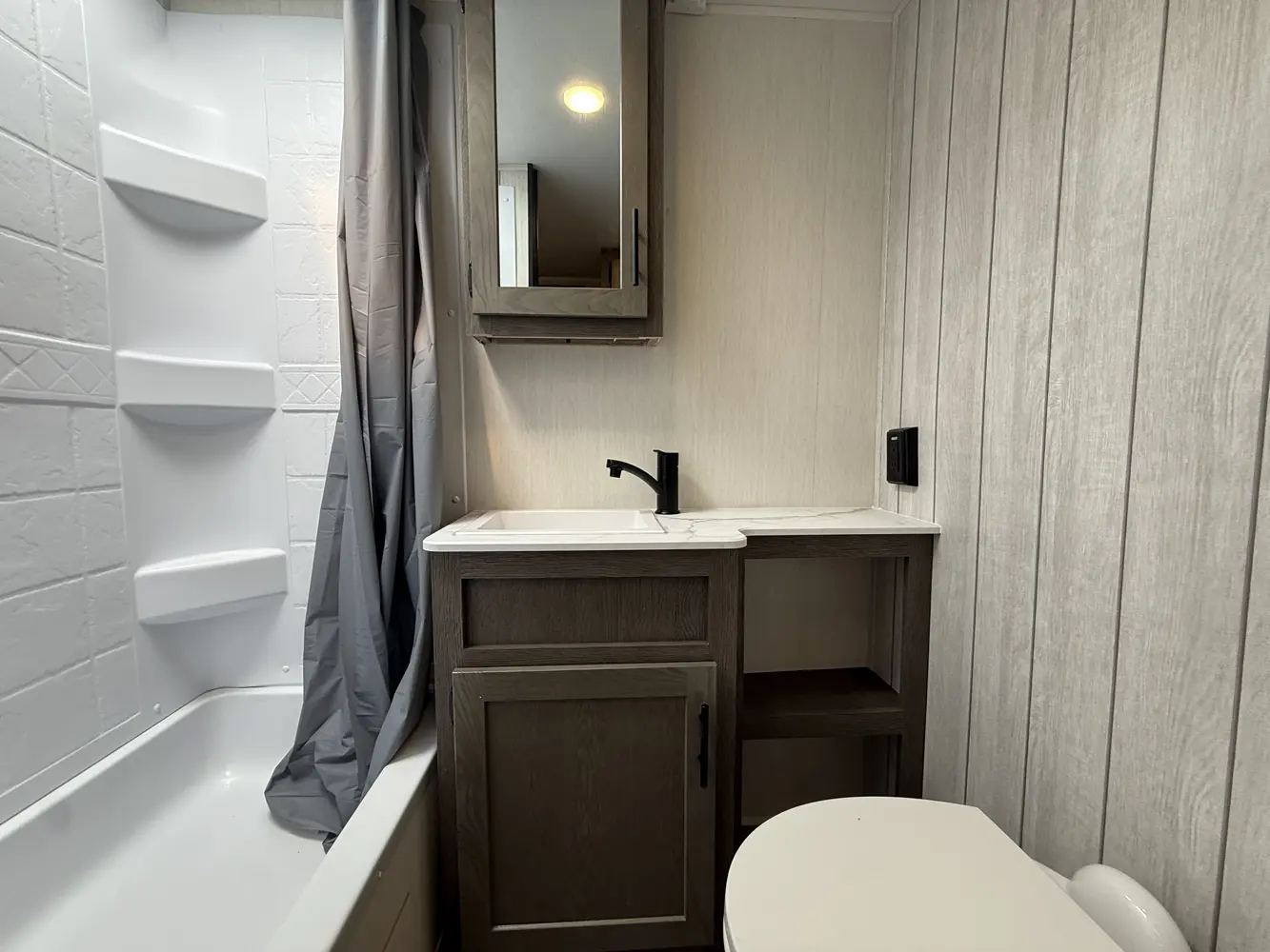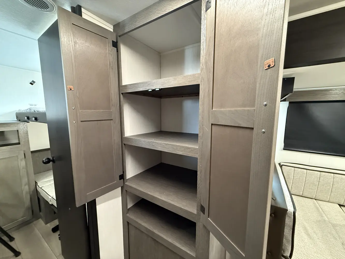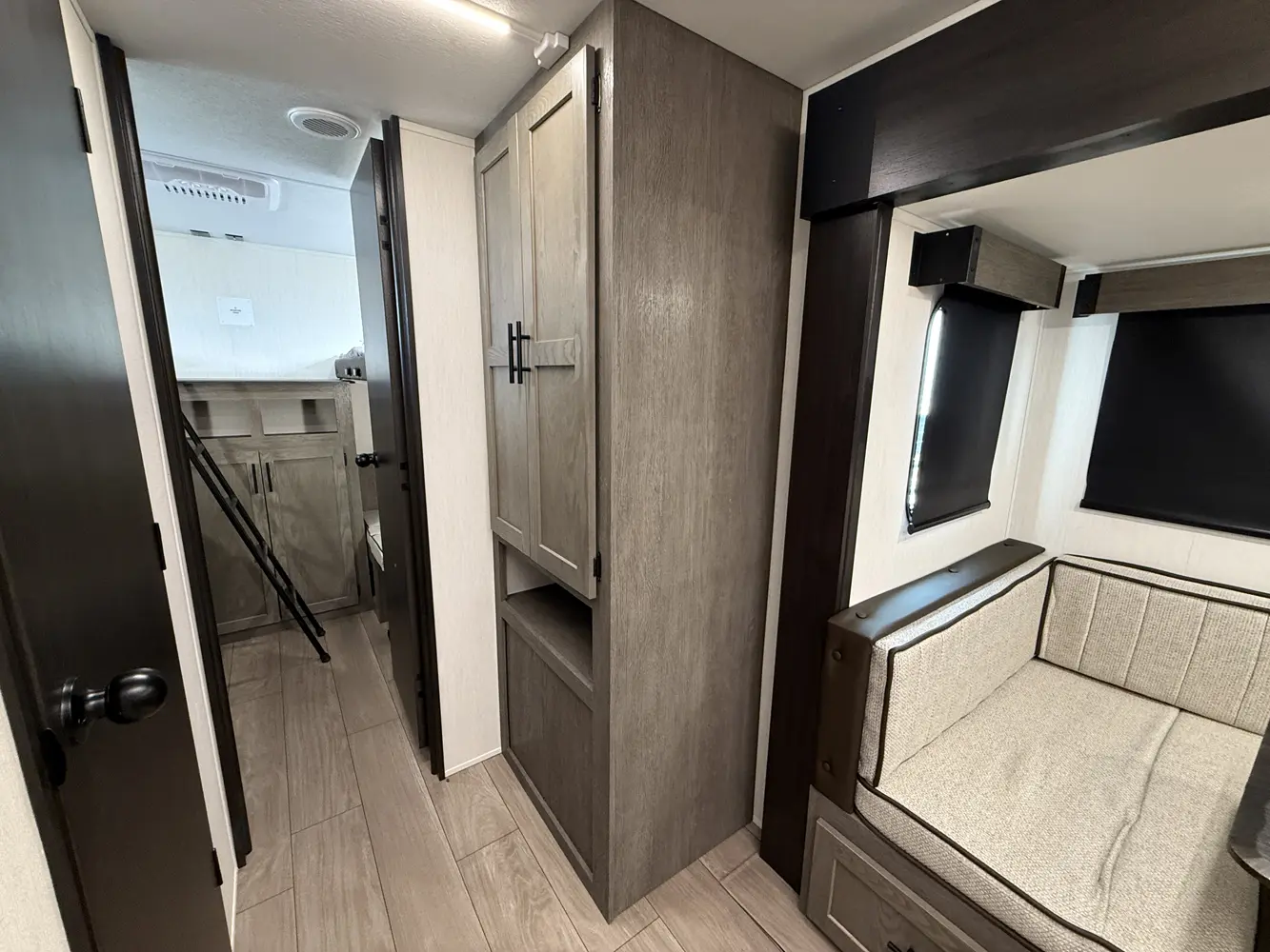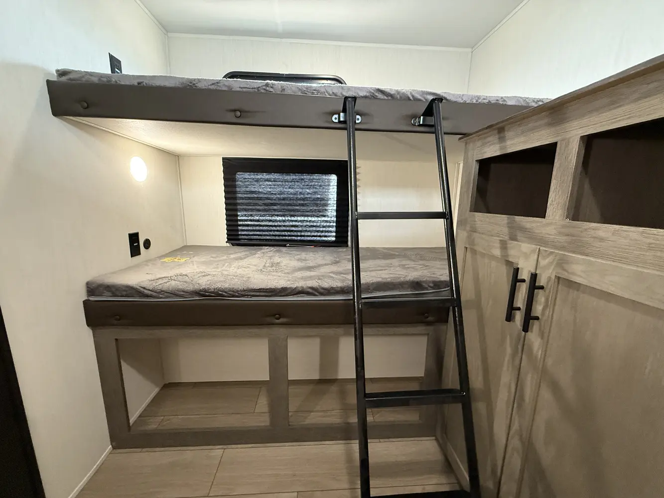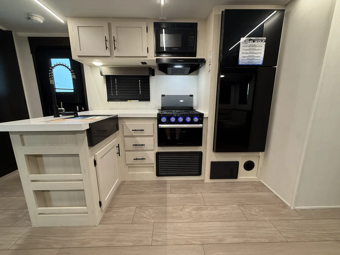 Available with either a bunk room or an extra bedroom with queen bed, the Alpha Wolf 280QBS by Forest River is a great option for families needing to maximize space in a form factor under 35 ft. A U-shaped dinette in the kitchen allows for plenty of seating and doubles as an extra bed when not in use. The living room features a cozy fireplace, TV hookups and a sofa also converts into extra sleeping. Relax up front with a queen size bed, laundry chute and plenty of wardrobe space.