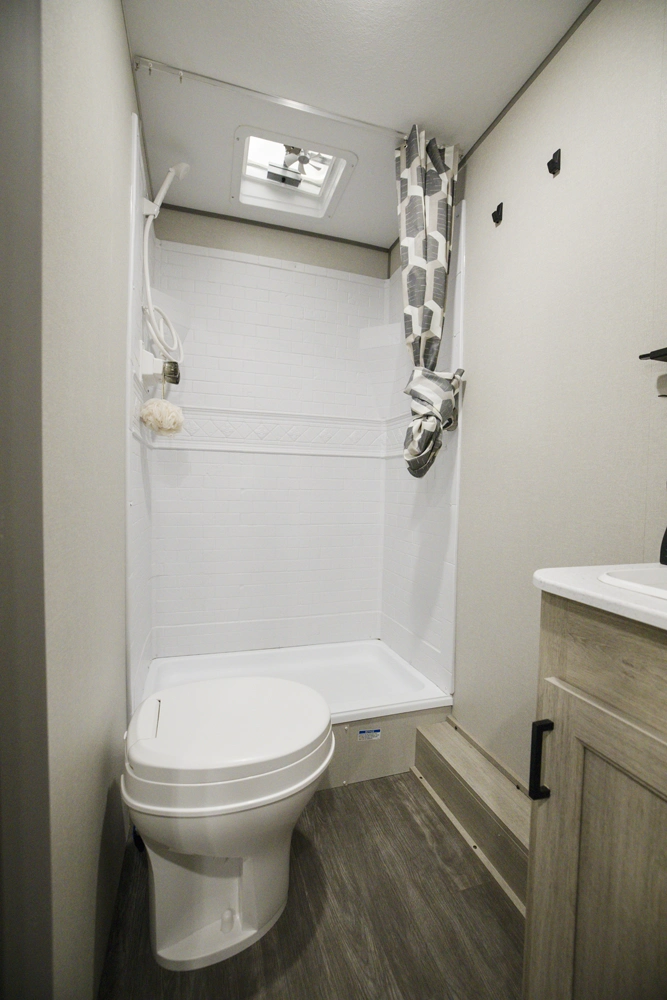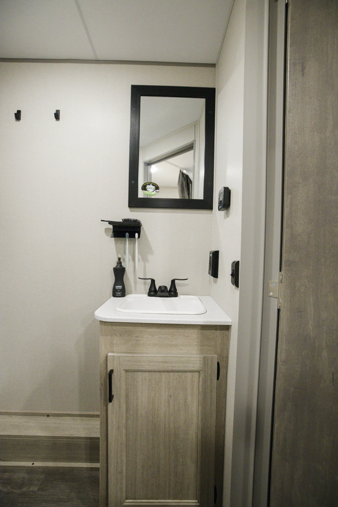Stretching into mid-size territory, this trailer expands living and sleeping space for small families or groups. Bunk-style sleeping and a functional kitchen give flexibility, making it a dependable choice for weekend retreats or short-term getaways.