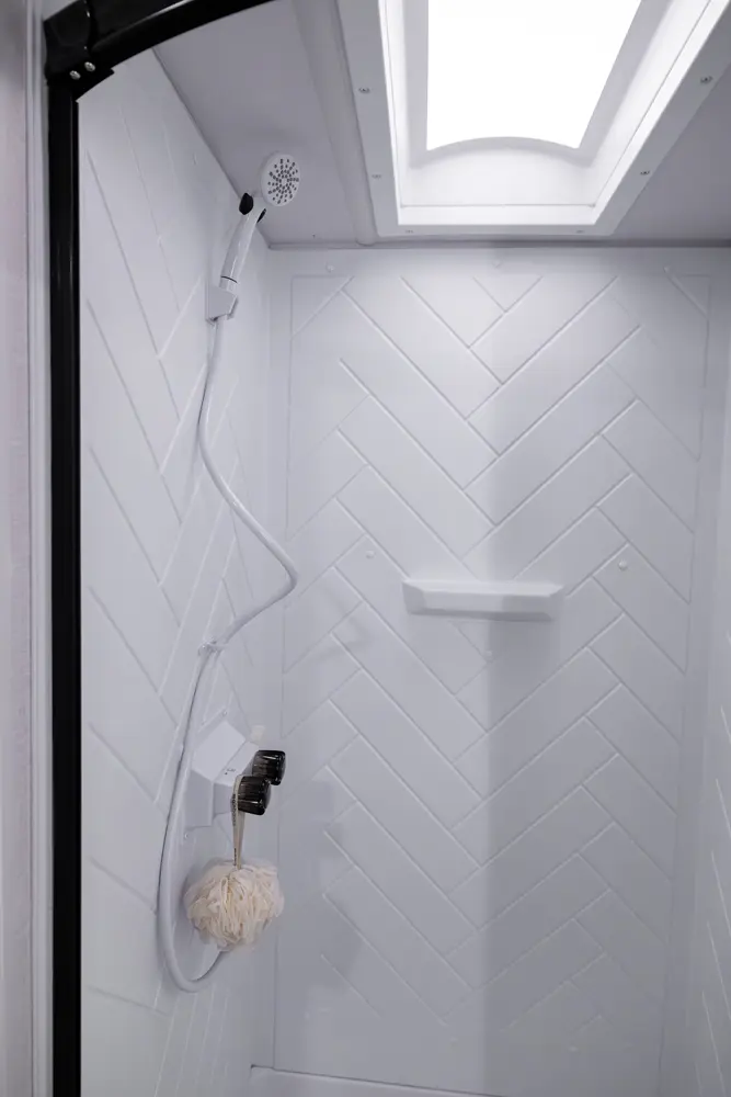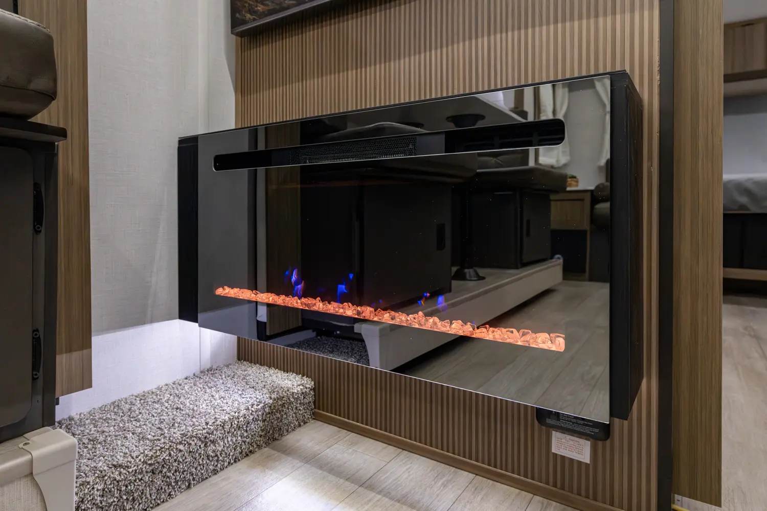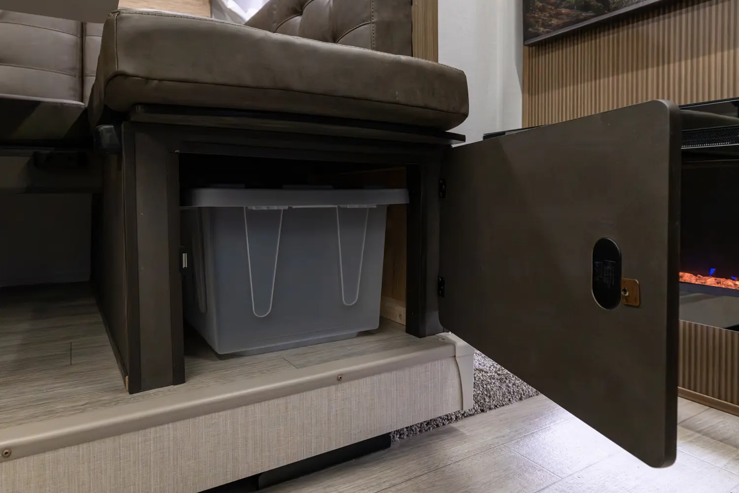 The 24RLXL is an extra-light travel trailer that comes in at 28' 11" and just over 5,000 lbs. The master bedroom features a ton of storage, including dedicated C-pap cubbies! The bathroom provides loads of storage as well, plus a walk-in shower. The kitchen is well-appointed with modern appliances and an oversized 11 CU. FT. refrigerator, fireplace, and U-dinette.