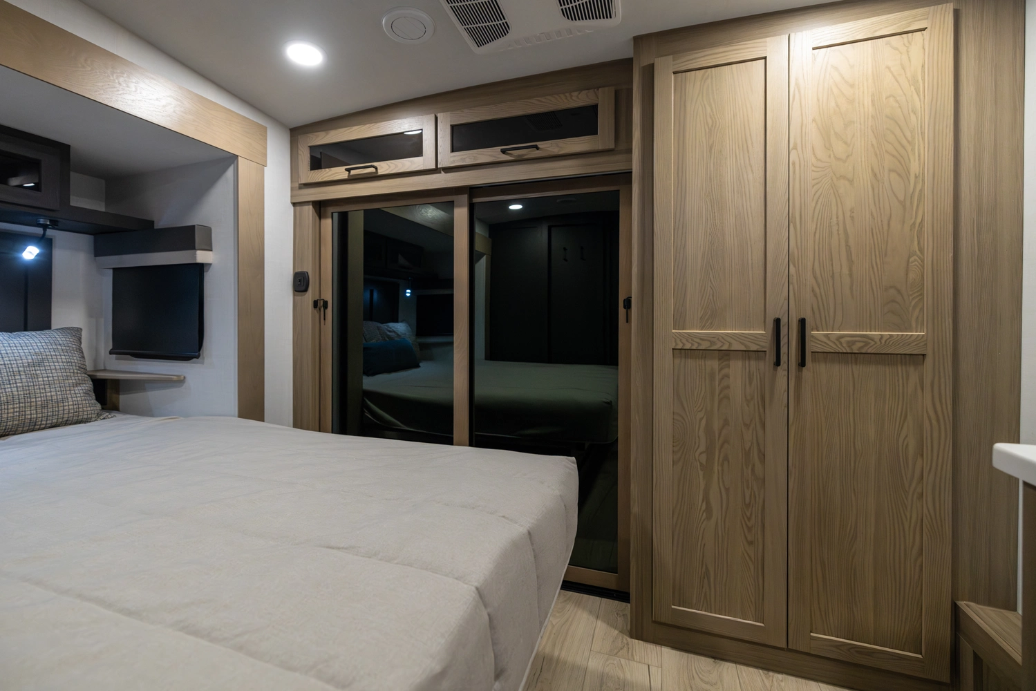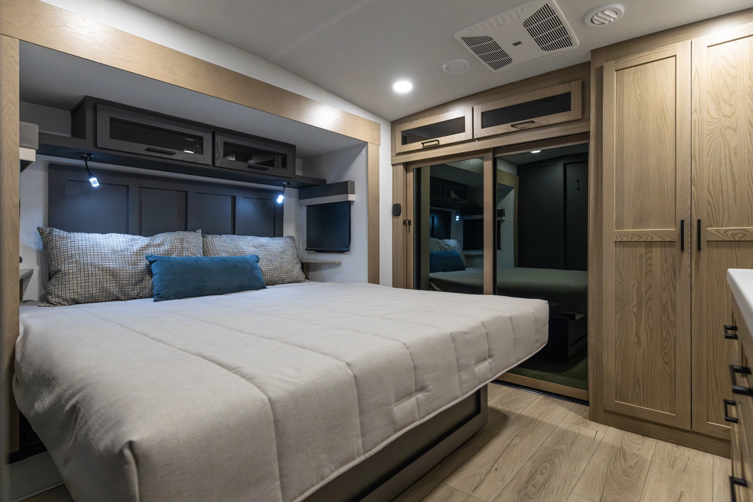 WHEN YOU WISH TO UPGRADE YOUR CAMPING EXPERIENCE, EMBRACE OUR CLASSIC LINE OF 5TH WHEELS. Elevate your journey with the quintessence of Flagstaff's first-in-class quality and exceptional craftsmanship, now augmented by a host of supplementary features to enrich your journey. Anticipate superior offerings such as king-sized beds, effortless electric auto-leveling, exquisite upgraded solid-surface countertops, and the luxury of residential-style soft-close drawers. Every Classic 5th wheel now comes with an option for our power package, propelling you to destinations you once deemed beyond reach.