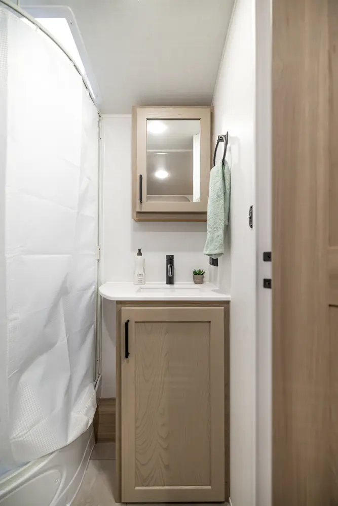 The Flagstaff E-Pro E19FBS is a rear entry couples coach with a small slide that offers so much great space. The large bathroom is one of the best features of this small couples coach. The 72” sofa also makes for a great bed for guests, children or pets. At 20’ and light weight, you will not be able to get more walk around footage than this great couples coach.