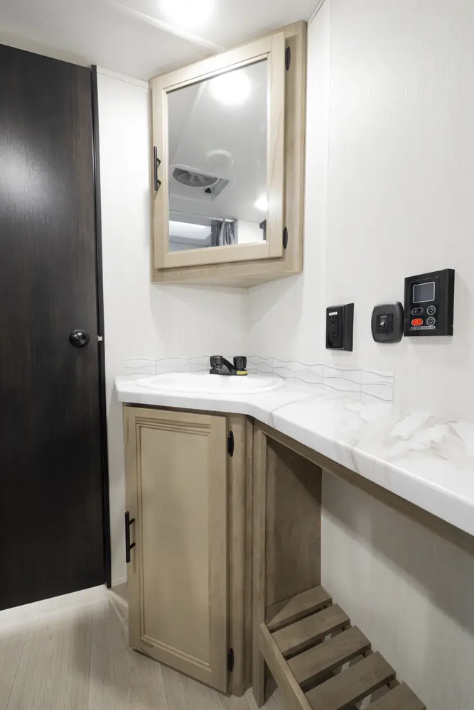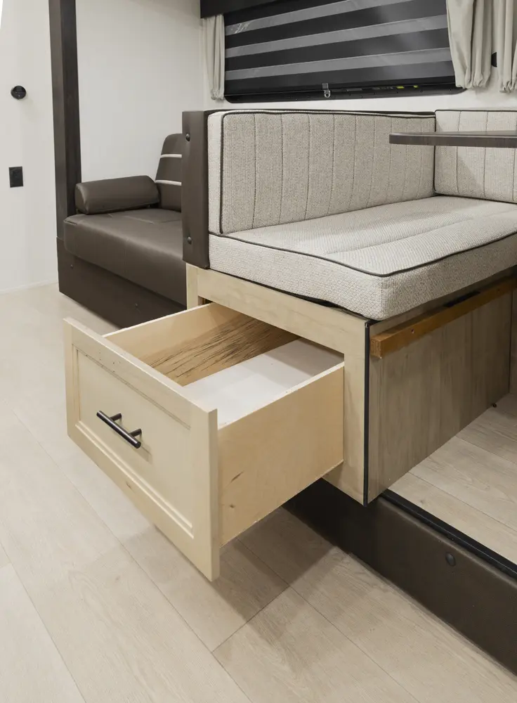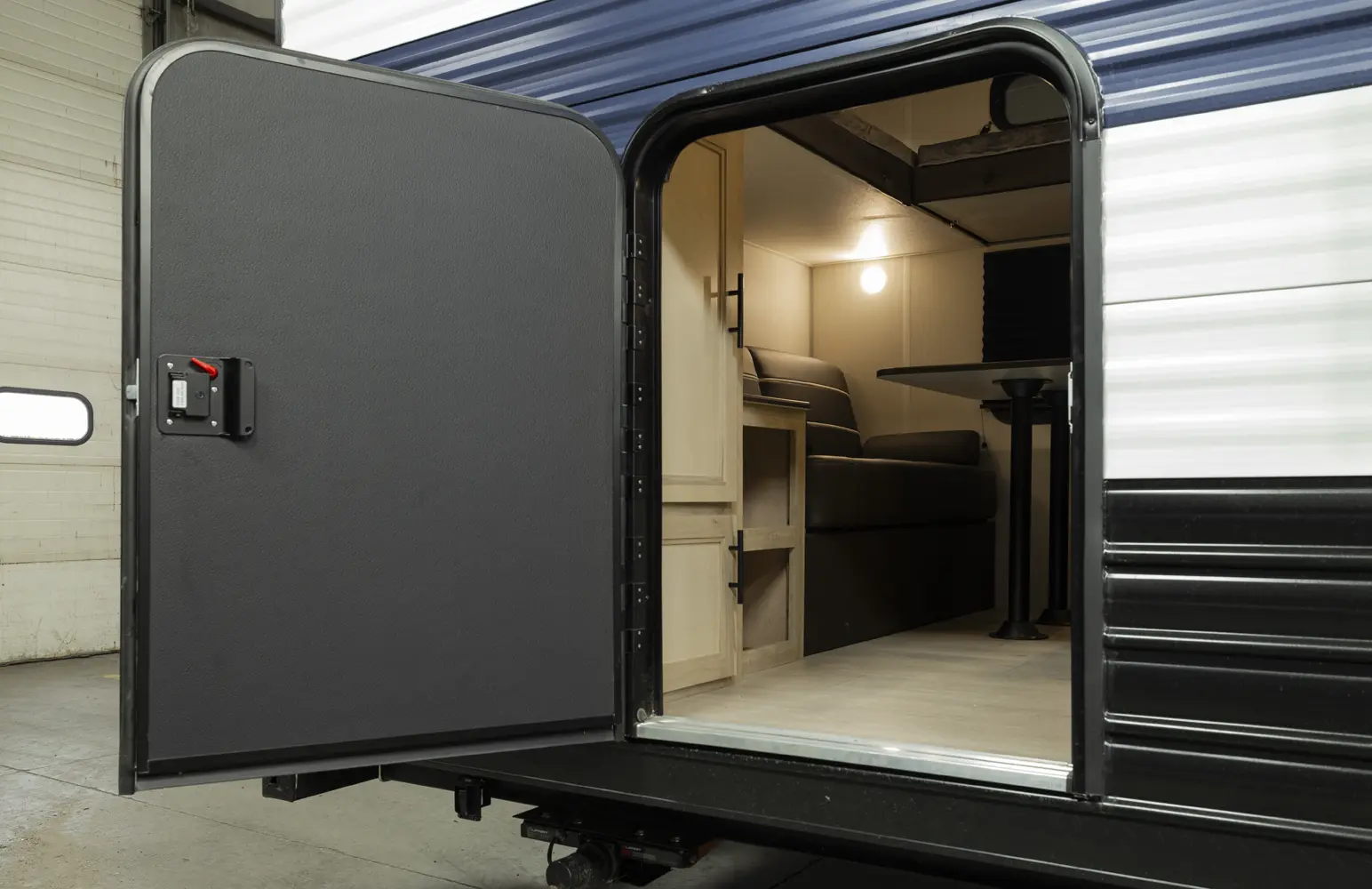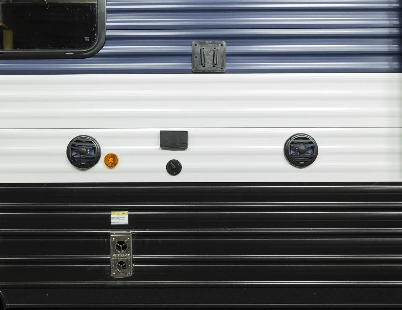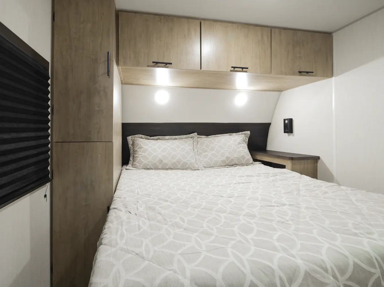 The Cherokee Grey Wolf 29NM by Forest River offers a unique floorplan with a rear bunkhouse that features a collapsable dinette, providing flexibility and space-saving functionality. The spacious living room, highlighted by a cozy fireplace and large windows, creates a welcoming atmosphere. The well-equipped kitchen, with its U-shaped dinette, full pantry, and ample prep space, is perfect for cooking and entertaining. Experience the comfort and versatility of the Cherokee Grey Wolf 29NM.