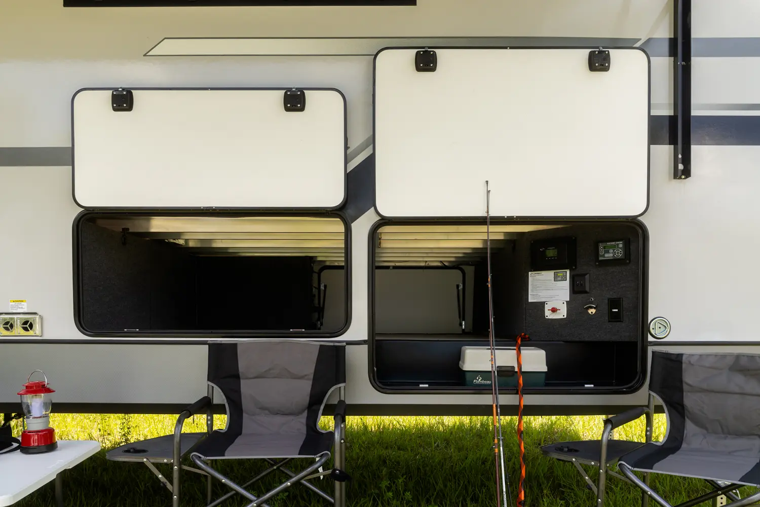• Extra Large Pass Thru Storage with Slam Latch Baggage Doors
