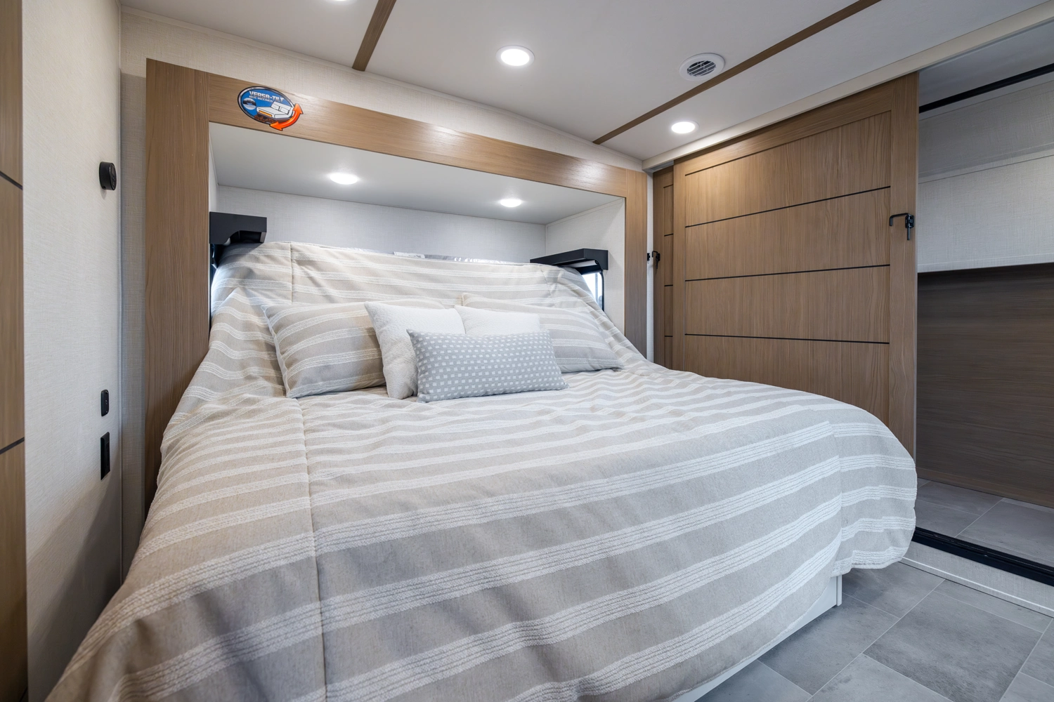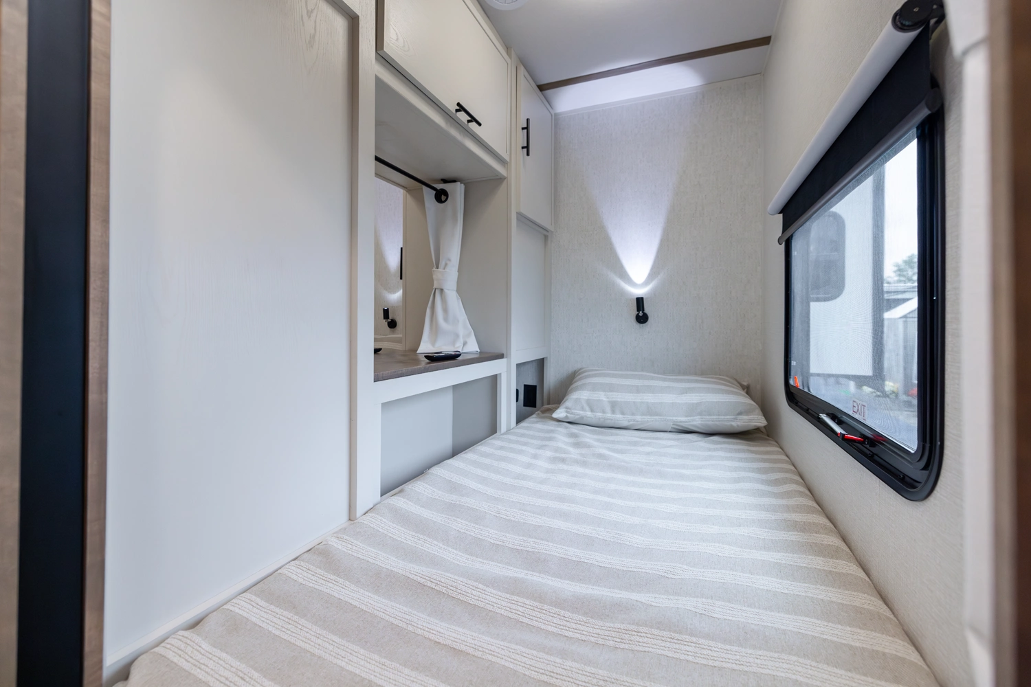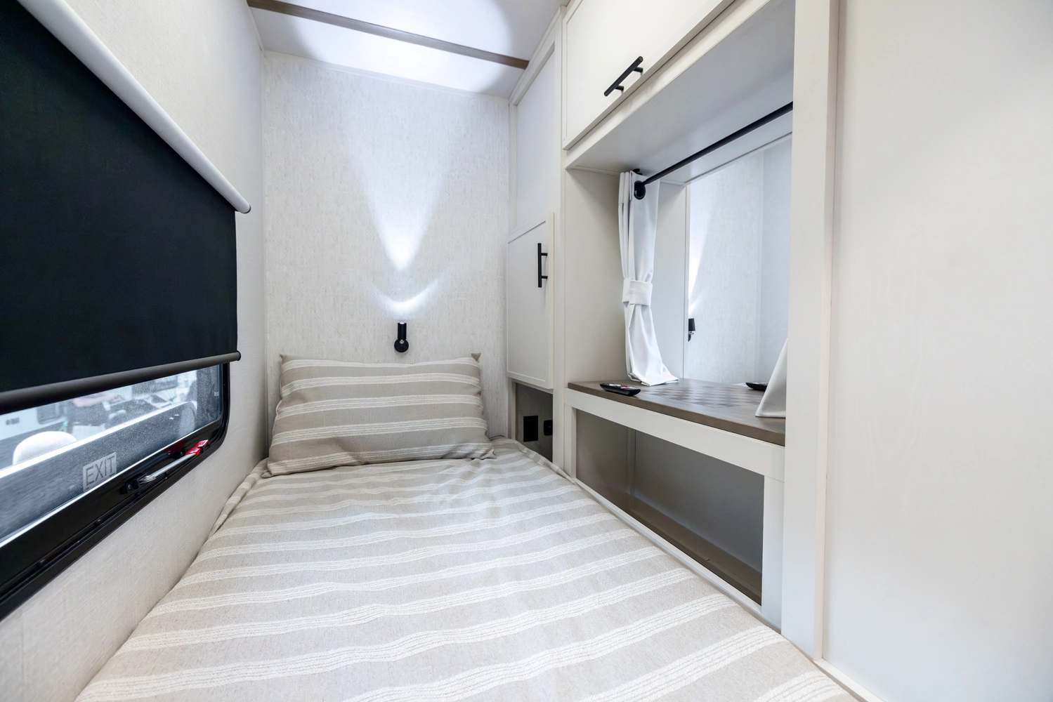 • 110 Outlet & 12V Charging Ports Beside Bed