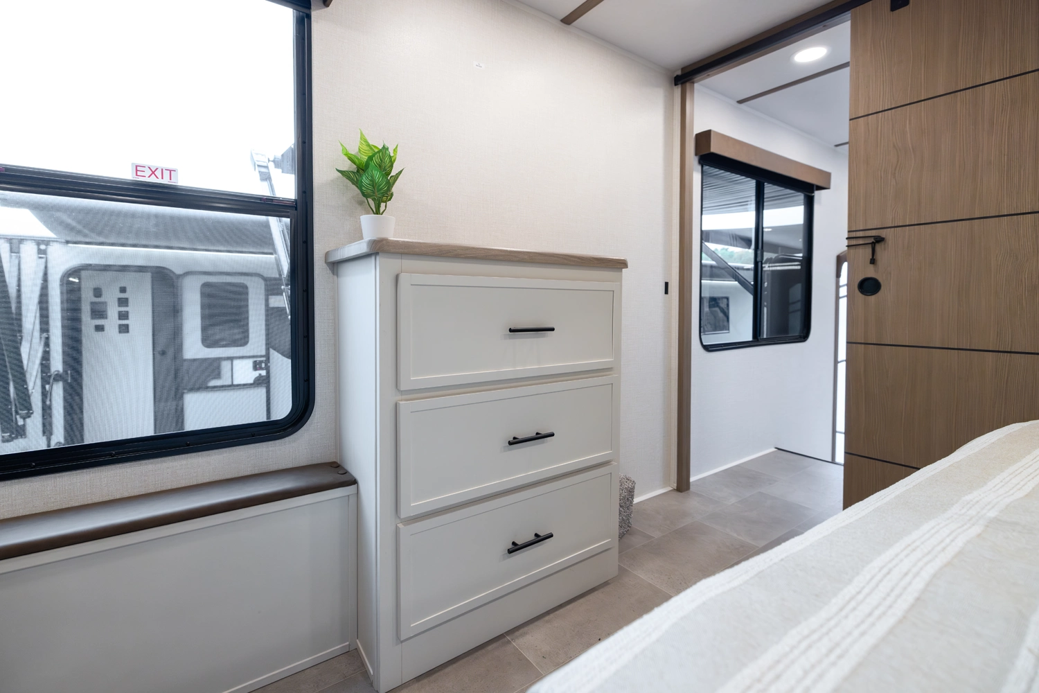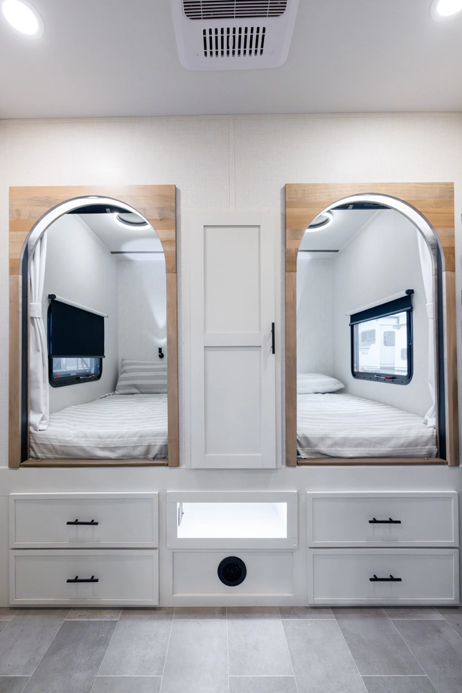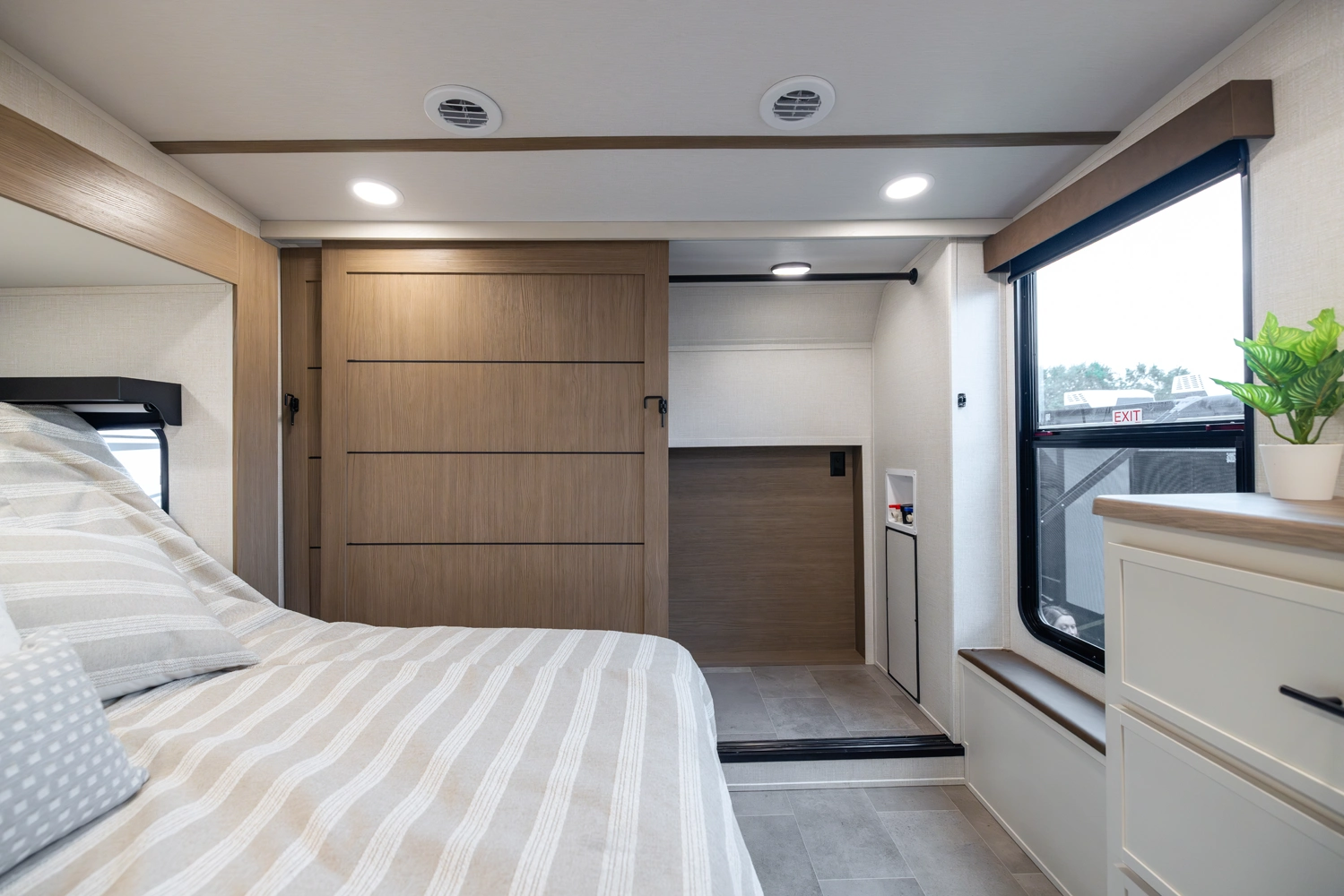 • 110 Outlet & 12V Charging Ports Beside Bed