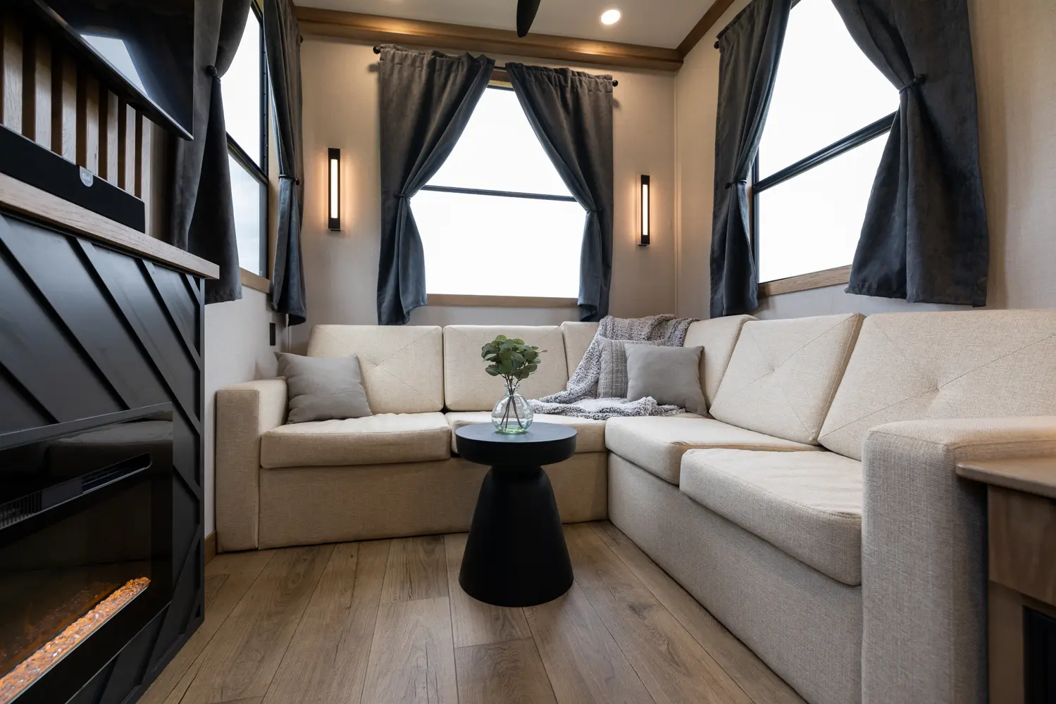 The Sequoia sets a new standard with its innovative slide-less floorplan, boosting efficiency and reducing maintenance. Inside, the galley kitchen features premium appliances, solid-surface countertops, and hardwood cabinetry. A spa-inspired bath, dual-closet bedroom, and expansive storage highlight its modern and functional design, delivering luxury and innovation in every detail.