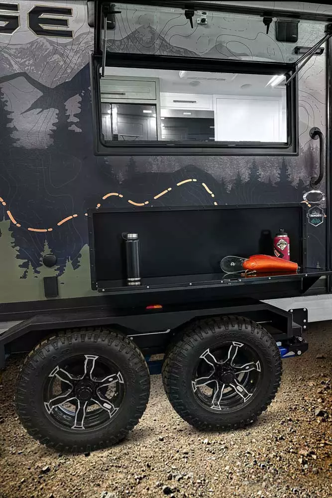 Pause will grant you an industry changing Air Suspension system allowing ample ground clearance when traveling down the road, a Solar Package that will allow you to camp off the beaten path for extended periods of time, and an exclusive Garmin System acting as the brains of the whole camper. With features including standard Composite walls, flooring, and roof, you will not have to worry about taking the path less traveled. Enjoy time spent in the great outdoors with Pause for your next camping venture.