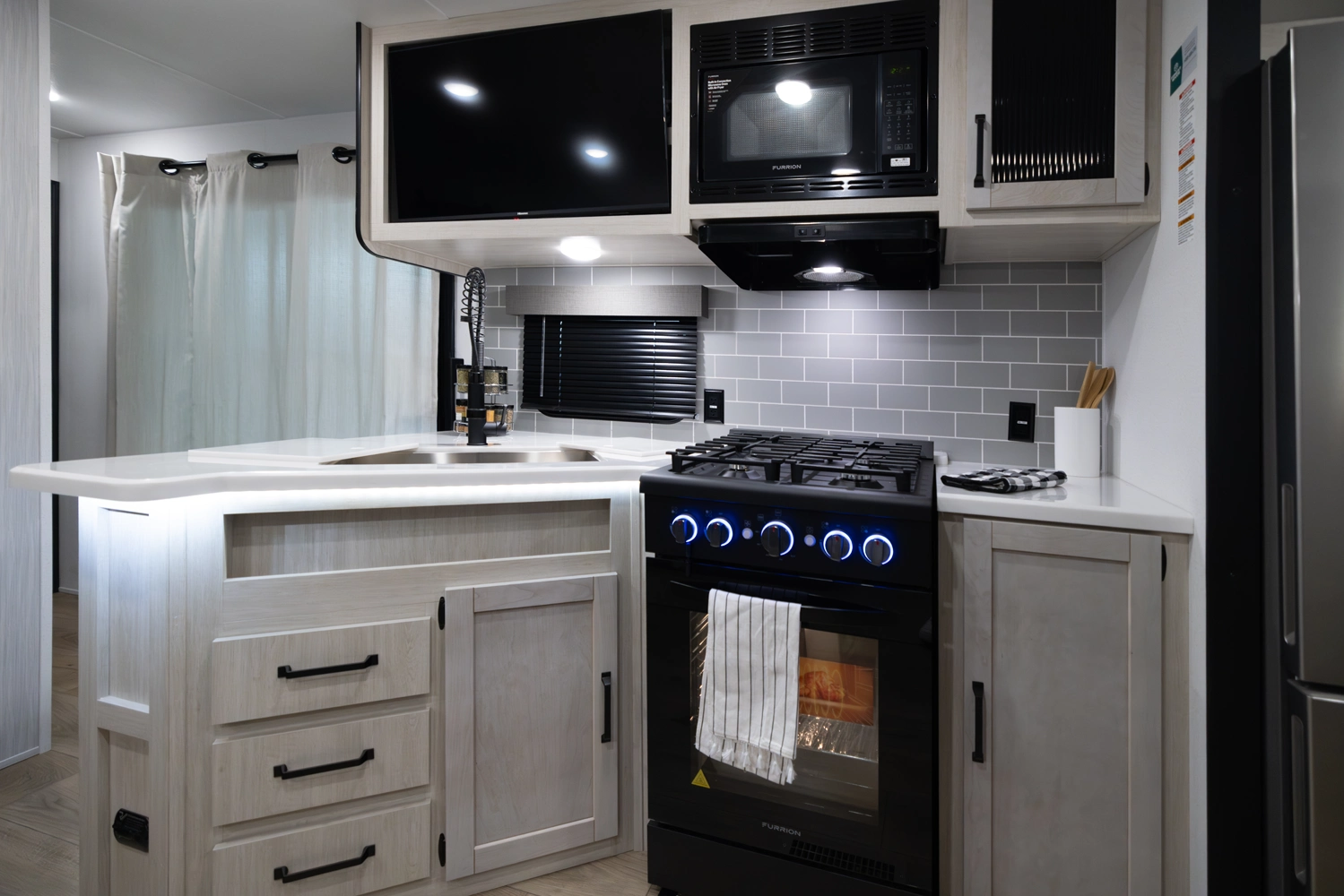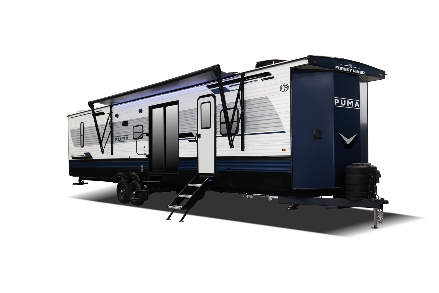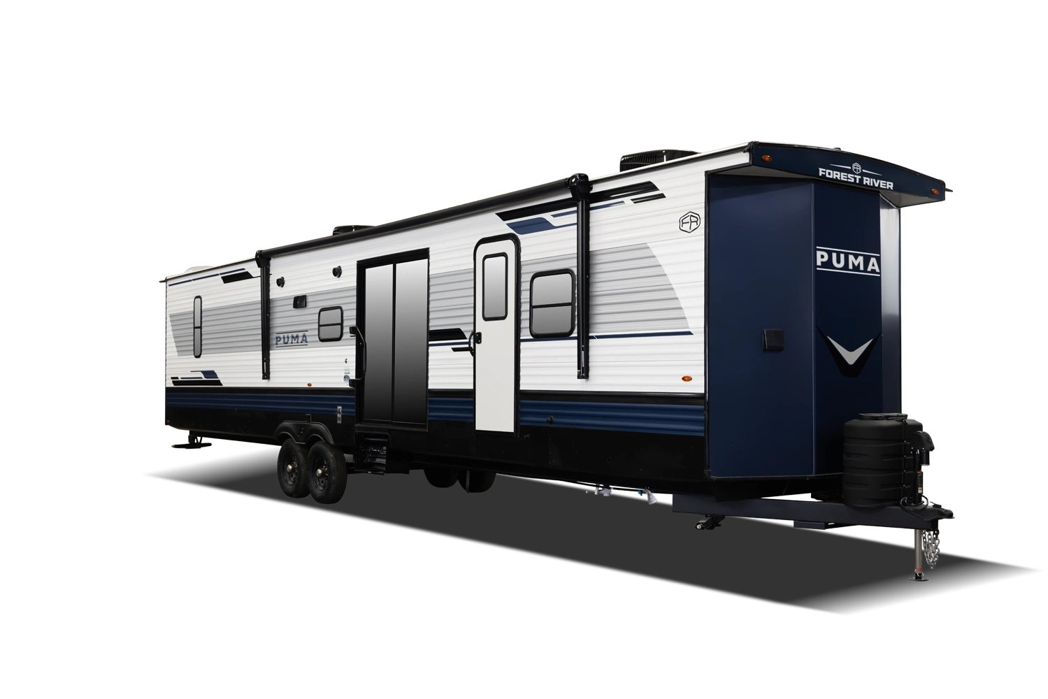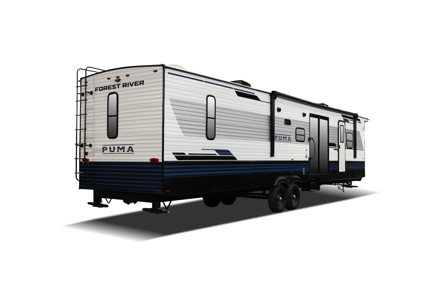 This Puma Destination Trailer features a front bedroom with a king bed slide out and rear bedroom with a queen bed slide out. Enjoy plenty of space for guests with a sofa and dinette. The rear queen bed slide out provides a comfortable bedroom for guests. For the guests in the rear room, a bathroom is also provided as well as a bathroom in the front of the camper as well. Furthermore, A wardrobe along with a closet with washer/dryer prep can be found very useful for all of your belongings.