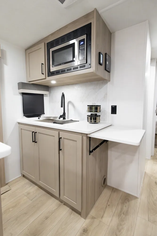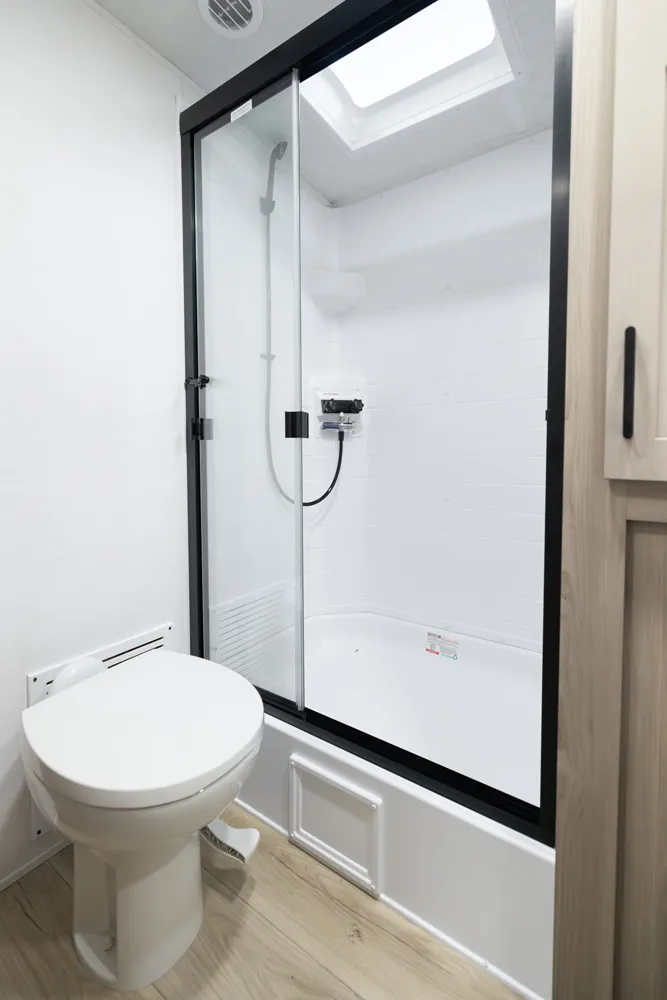 • Platinum Package: Auto Leveling, Frameless Windows, 1800W Inverter, MORryde Strut Assist Entry Step, Dual 30 LP Tanks