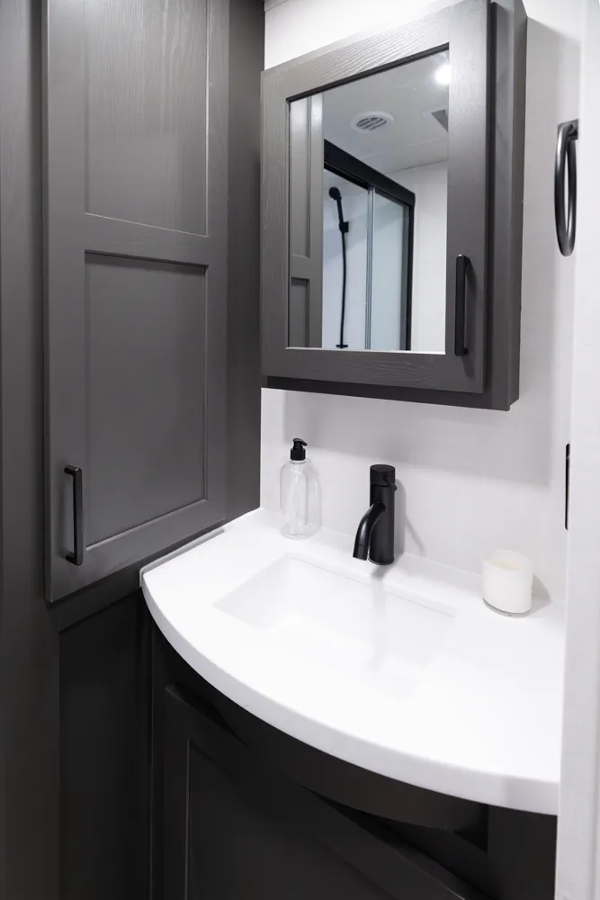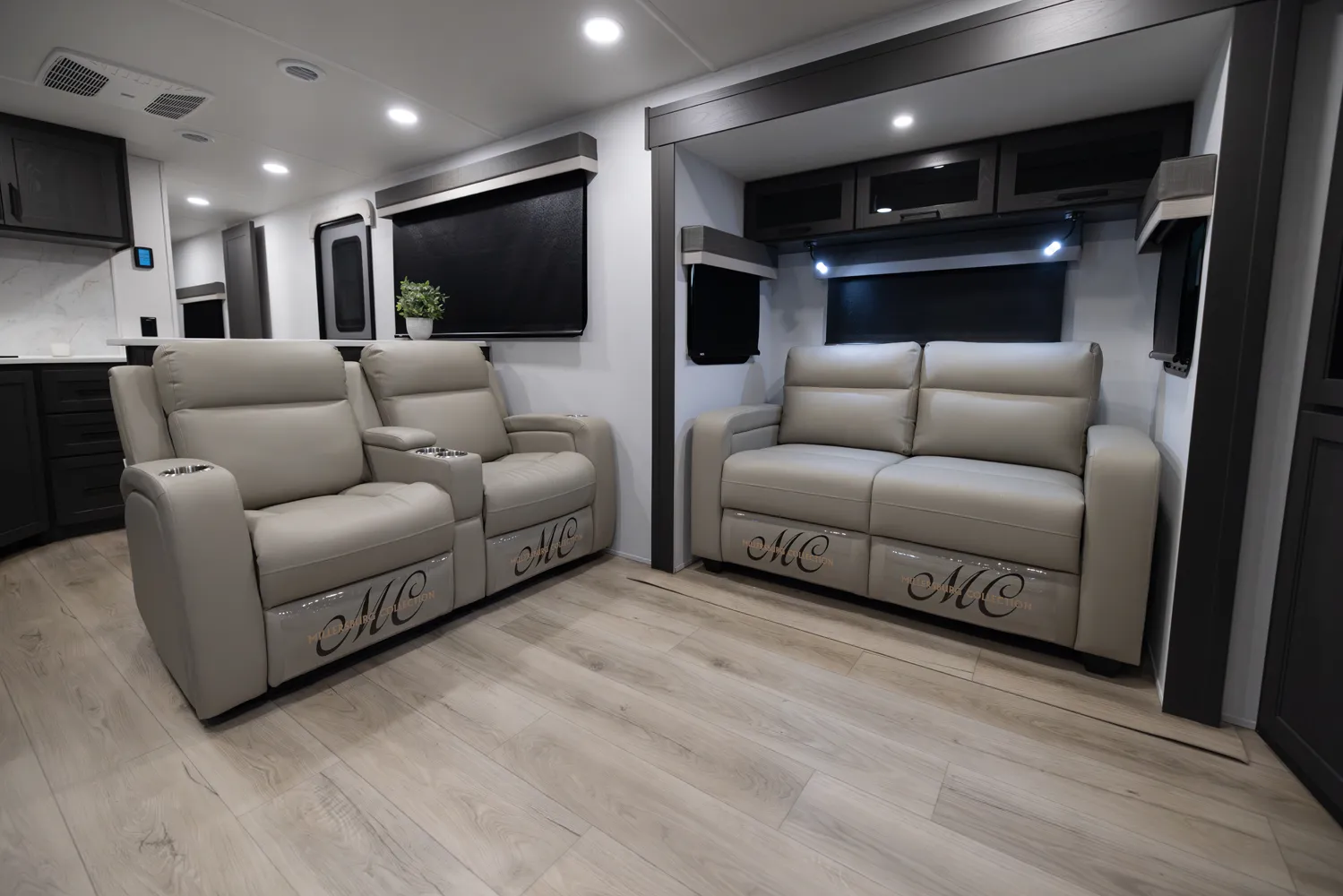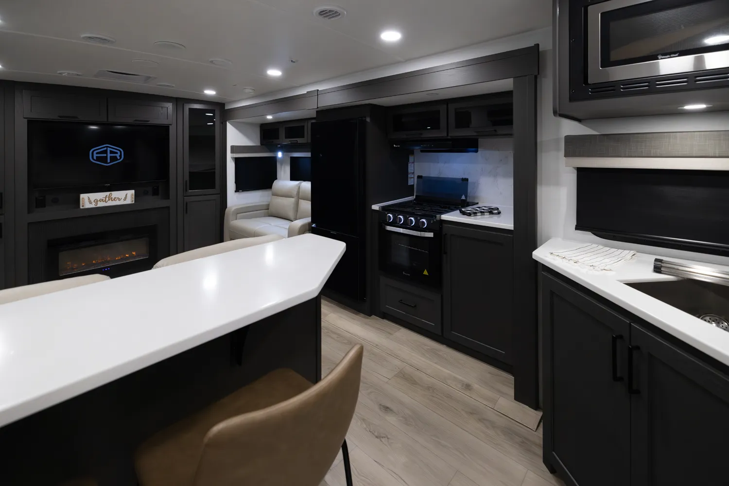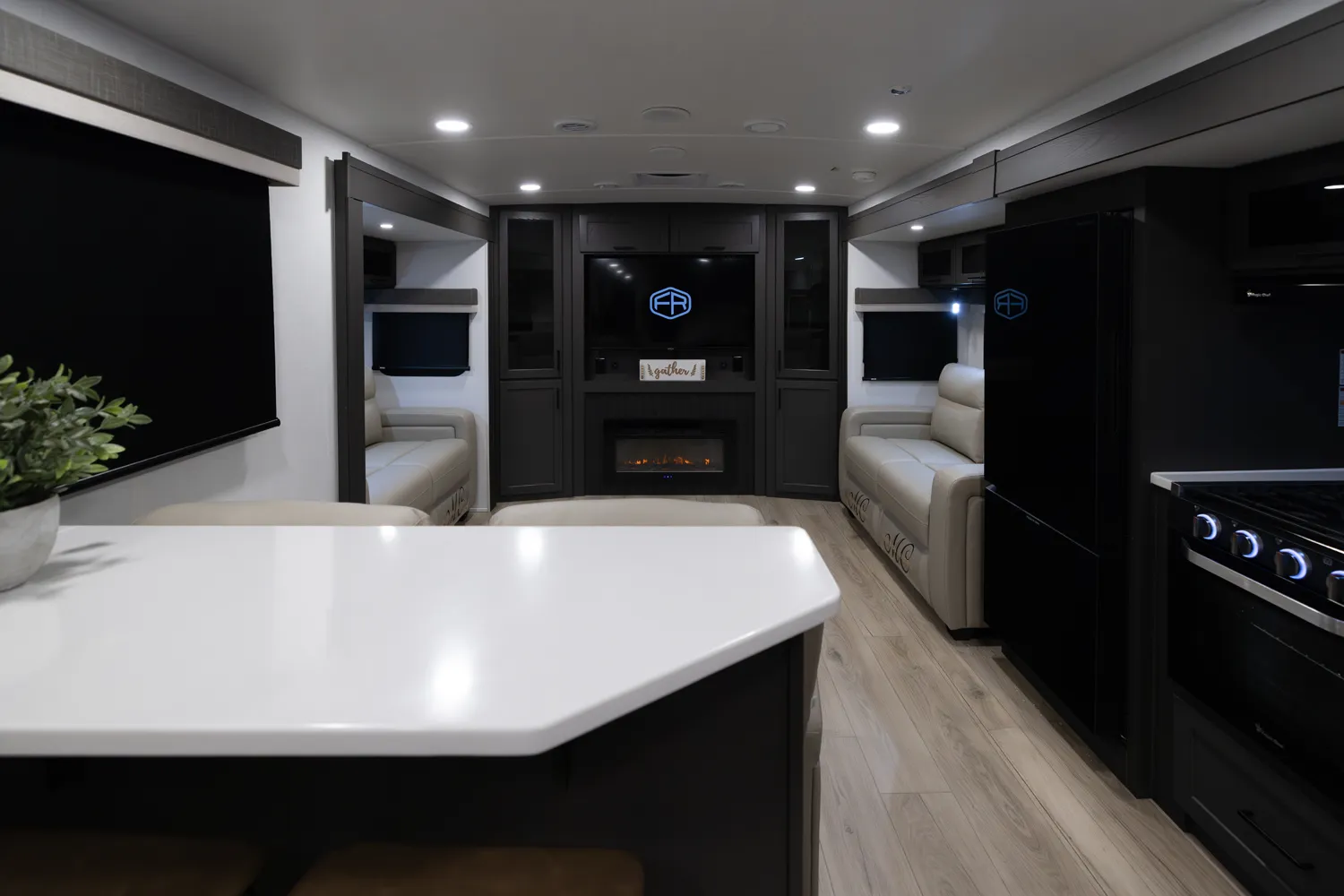 • Platinum Package: Auto Leveling, Frameless Windows, 1800W Inverter, MORryde Strut Assist Entry Step, Dual 30 LP Tanks