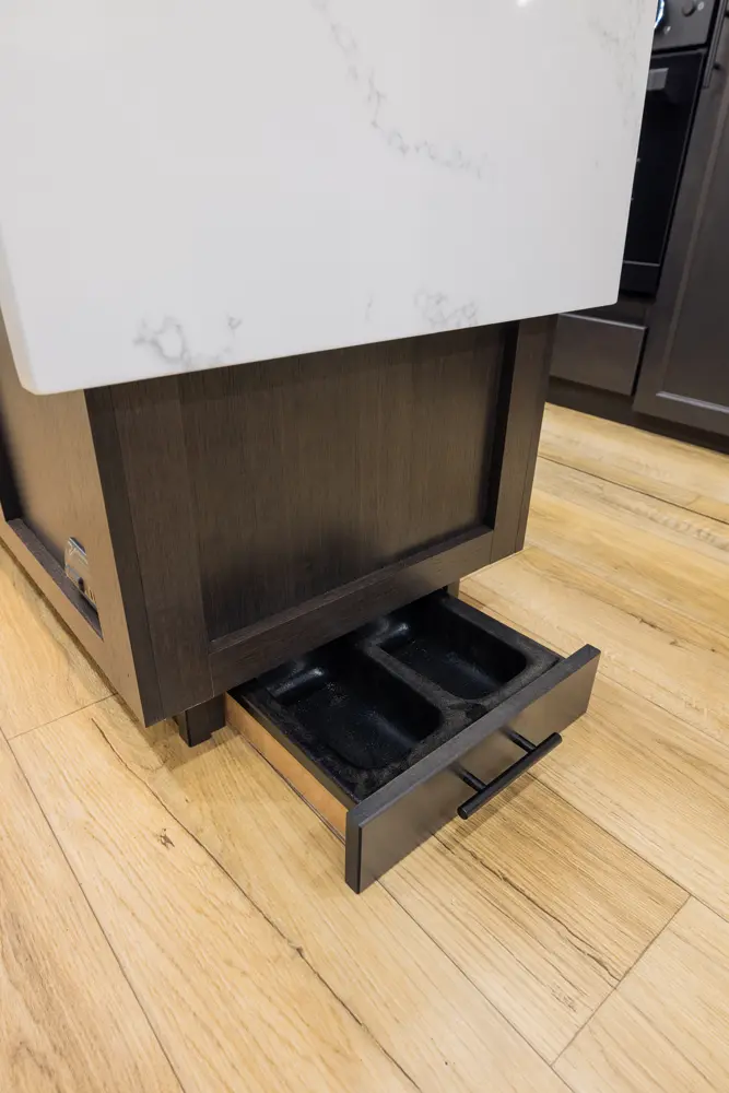 Discover the future of 5th wheel RV living with the Sabre Sundeck 33RLP by Forest River. This innovative RV features an industry-first retractable patio deck, extending your outdoor living space. Inside, you’ll find a L-shaped sectional, perfect for relaxation, and an impressive entertainment center complete with a fireplace. The fully equipped kitchen is a chef’s dream, boasting ample solid surface countertops, a residential-style oven, an air fryer microwave, and a 12-volt refrigerator.