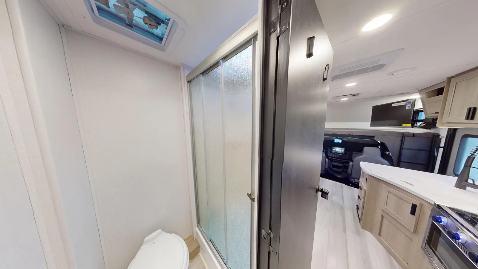 The 2500TS is a three-slide model that features a large queen bedroom with wardrobe closet and a roomy full bathroom that spans the width of the unit. The kitchen is ready for mealtime on the go with a cooktop, convection microwave, 12V stainless steel refrigerator, and sink with spray faucet. The large U-dinette can be swapped out for theater seating, depending on your preference. There's a cab over bunk that provides an additional sleeping surface or extra storage space.