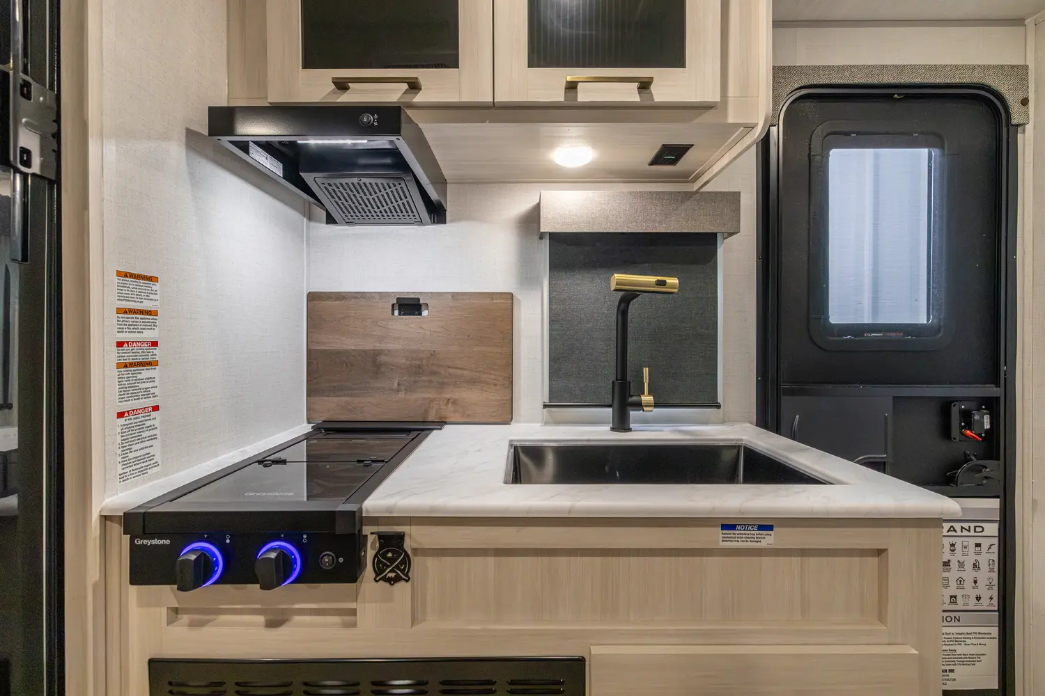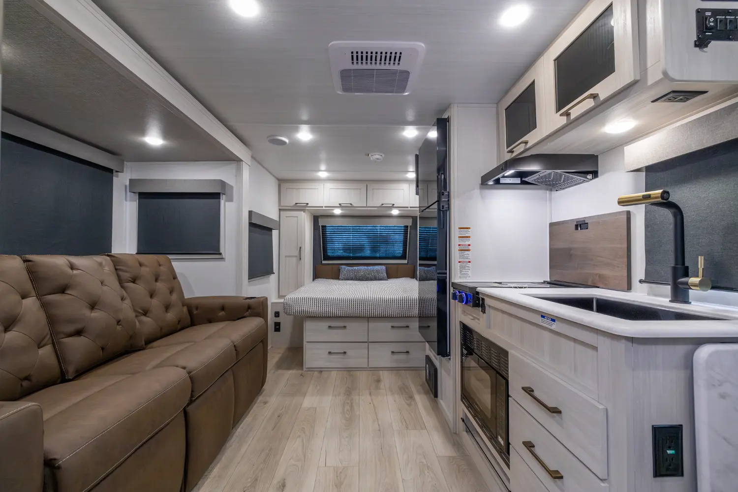 Sleeps up to 4. Need tow vehicle rated at 4300 lbs. or more. The 19RBLE is Adventure Ready! - Our most nimble couple’s model made for new and seasoned RVers alike features; a big rear washroom with extra wardrobe, large kitchen pantry, deep dinette slide-out with storage doors, versatile convection microwave oven, sizable 15’ hang outside all day awning, and our renowned queen bedroom suite configuration! Newly Added our Sub 4s Outside Kitchen; griddle, prep shelf, & spray port!