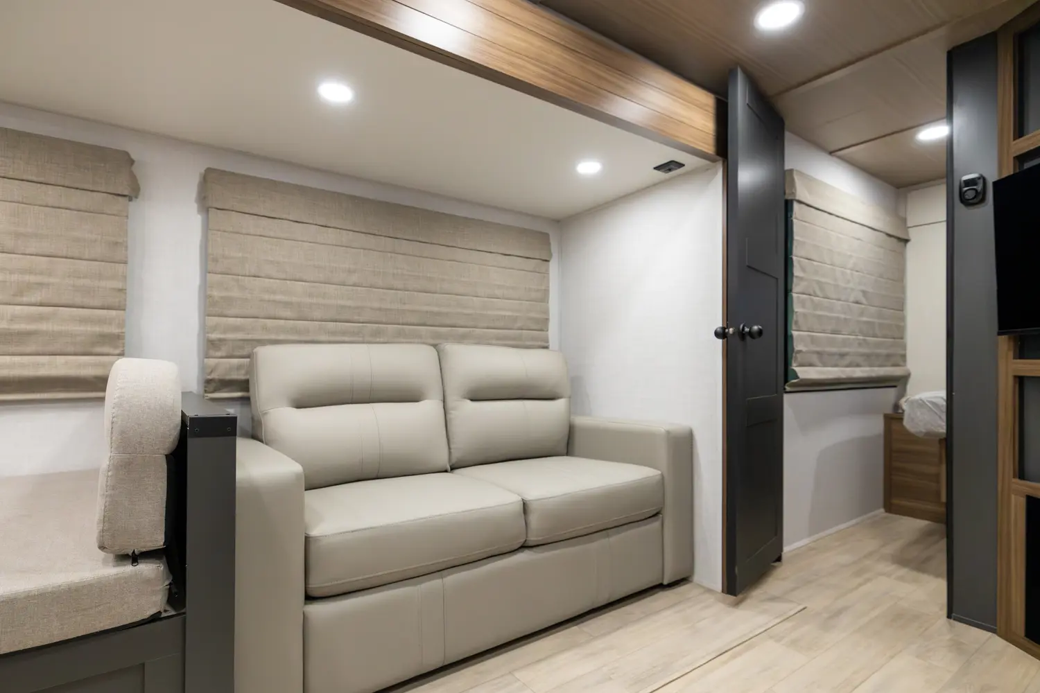 • True Flush Floor Slideouts with Fabric-Backed Shaw Linoleum