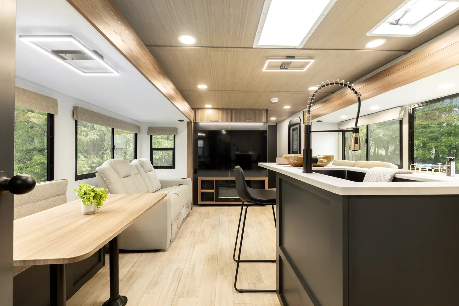 The 3400Bh is our traditional bunkhouse model which features sleeping capabilities of up to 11, opposing furniture/entertainment area, and a dedicated bunkroom slide. This pull-behind makes the opportunities endless for family and friends looking for a fun adventure.