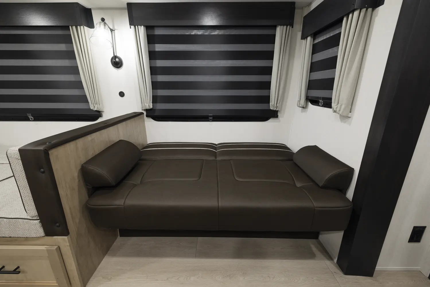 The 301BH is a great option for large families looking for an affordable option. This design is highlighted by a huge bunk room that has sleeping for four and plenty of storage to stash things away. Families will also appreciate the large kitchen that features a u-shape dinette and a sofa for maximum seating.