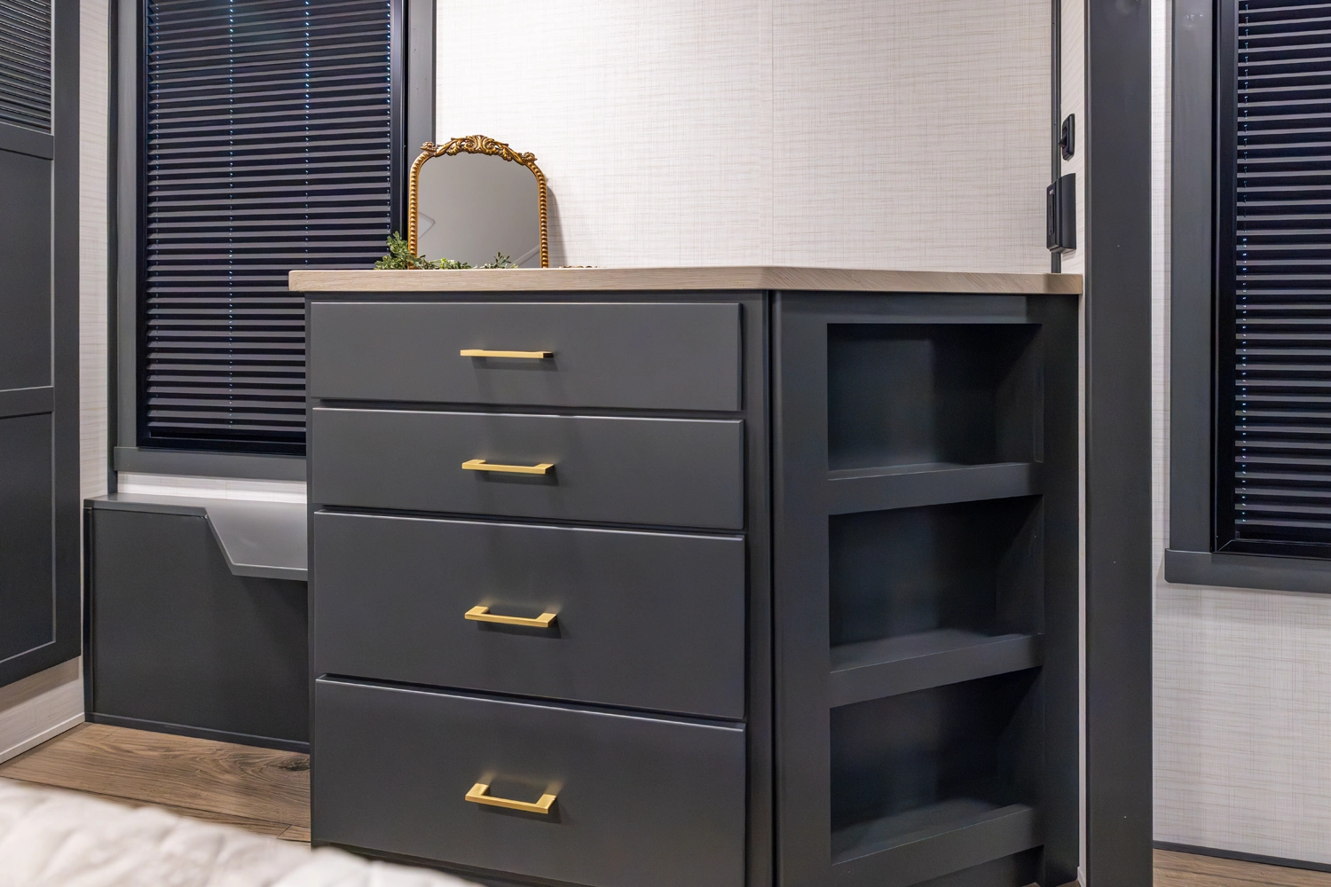 • Square Windows w/ Built in shades